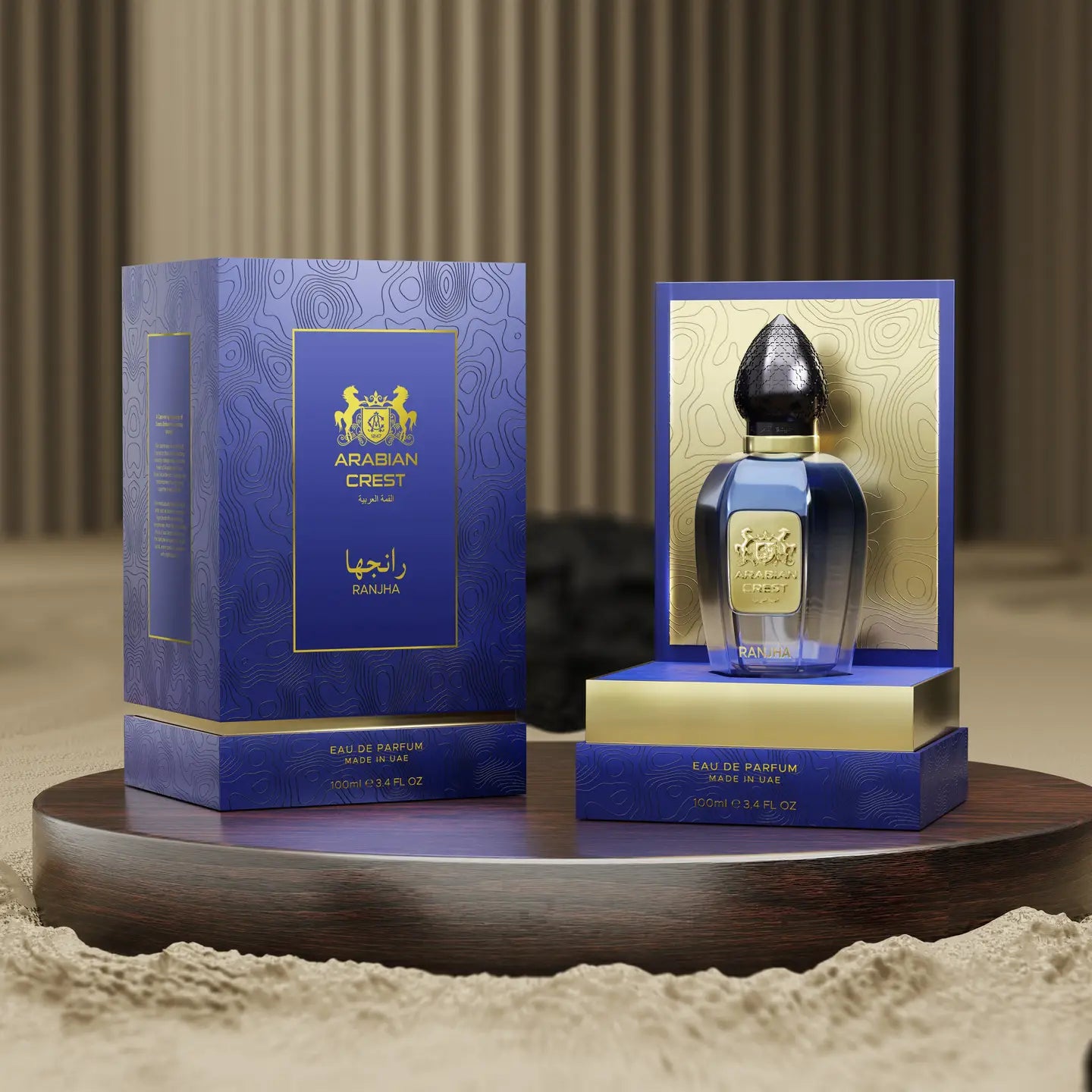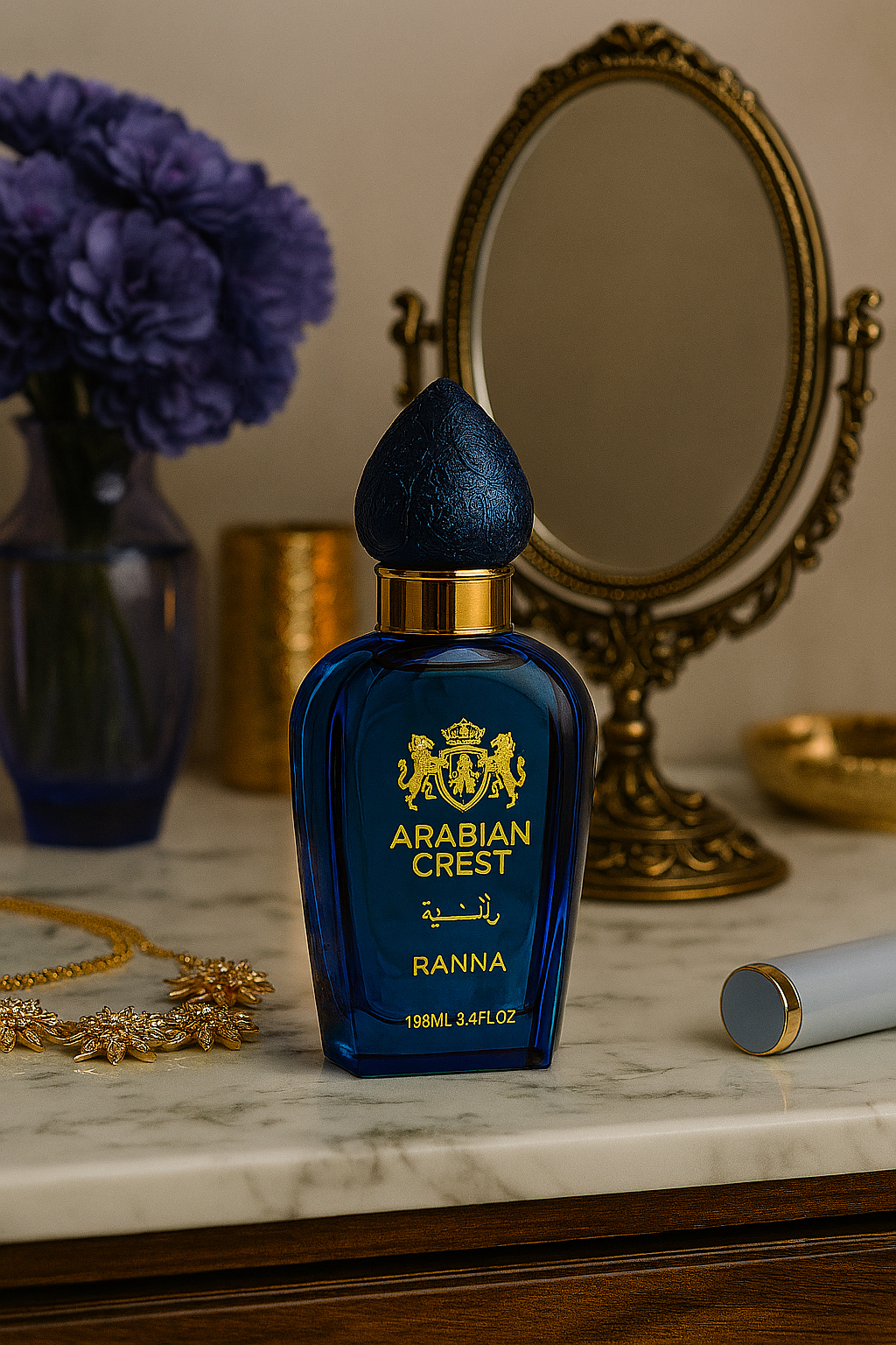 Arabian Crest – RANNA est une eau de parfum somptueuse qui marie l’élégance contemporaine à l’héritage olfactif du Moyen-Orient, dévoilant dès les premières notes une fraîcheur vibrante de citron vert et de lavande relevée par une touche épicée de poivre rose, avant de s’épanouir dans un cœur floral et boisé dominé par la rose et le cèdre, pour finalement s’ancrer dans un sillage profond et sensuel de musc blanc, ambre et vétiver, le tout contenu dans un flacon bleu transparent aux reflets dorés, présenté dans un écrin royal qui évoque les mystères du désert sous les étoiles, idéal pour sublimer les journées raffinées comme les soirées envoûtantes.
