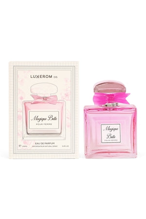 Magique Belle de Luxerom Co. est une eau de parfum envoûtante qui incarne la quintessence de la féminité moderne à travers un flacon rose délicatement orné d’un ruban satiné, révélant une fragrance florale-orientale aux accents lumineux de bergamote et de poire, qui s’épanouit dans un cœur romantique de rose et de jasmin avant de s’abandonner à un sillage sensuel de vanille et de musc blanc, idéale pour sublimer les instants précieux du quotidien comme les soirées élégantes, tout en évoquant l’élégance intemporelle et la magie douce d’un rêve parfumé venu des Émirats.