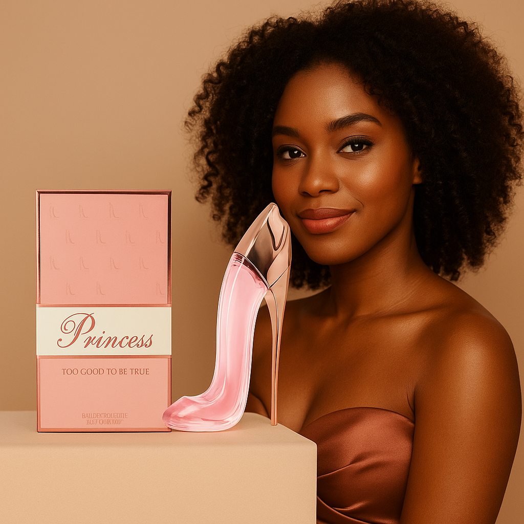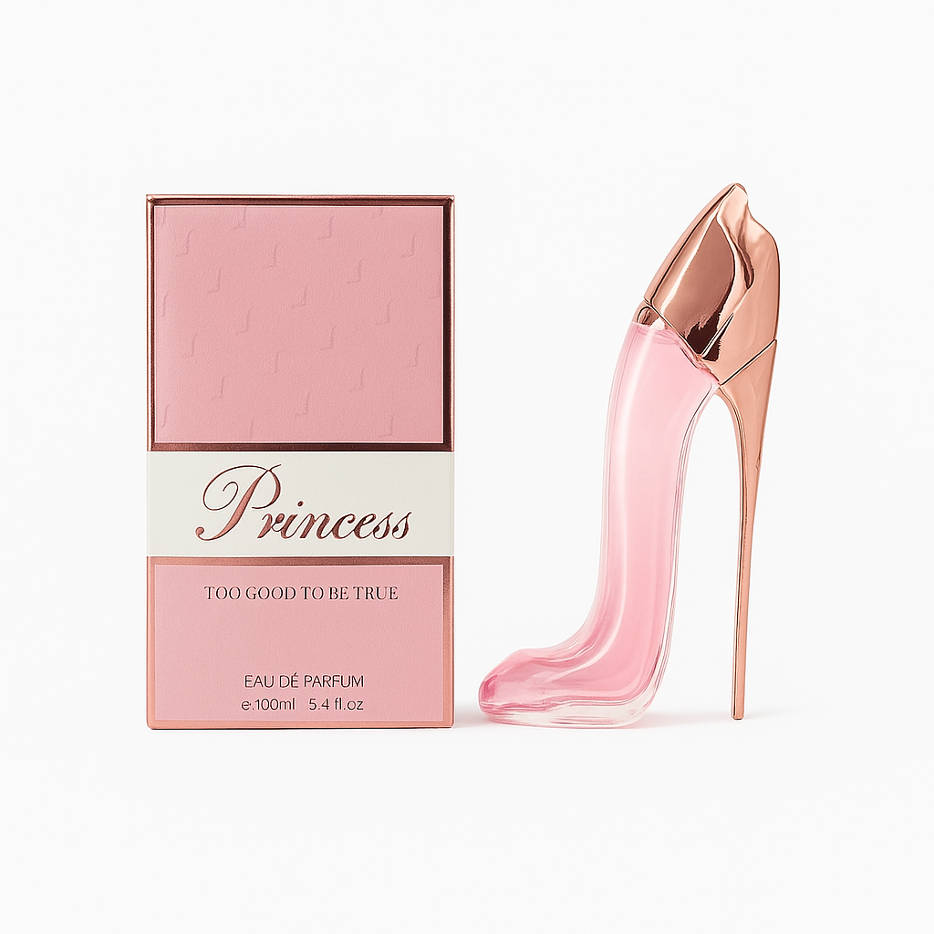 Princess Too Good to Be True est une eau de parfum féminine glamour, audacieuse et pleine de charme. Son flacon en forme d’escarpin rose doré symbolise la féminité, la séduction et l’élégance moderne.Ce parfum est conçu pour la femme confiante, raffinée et rayonnante — une véritable “princesse” des temps modernes. Il incarne la grâce, la sensualité et la sophistication, tout en apportant une touche de douceur et de rêve.